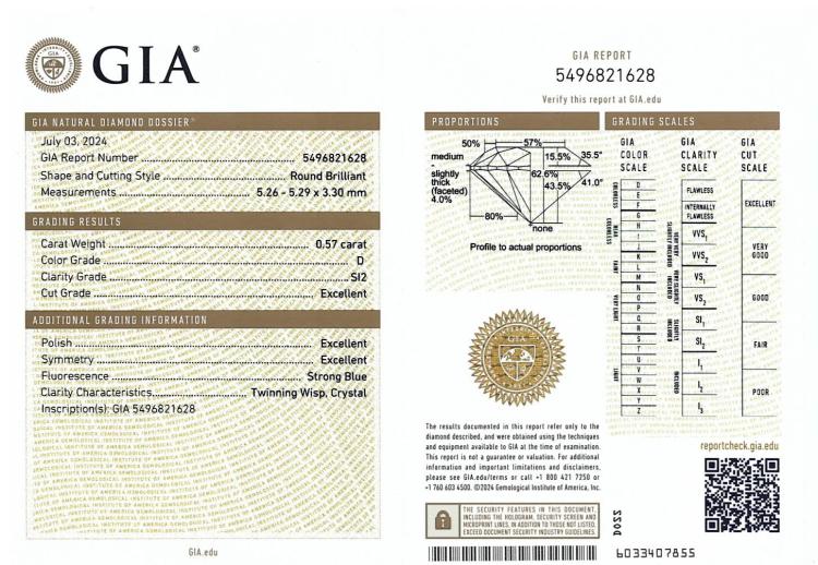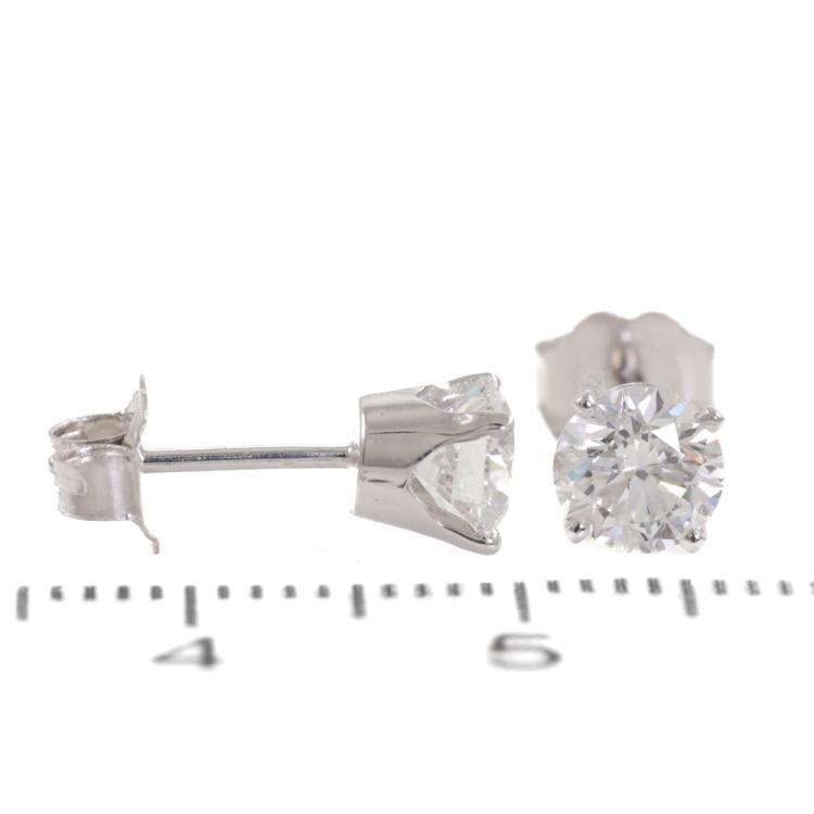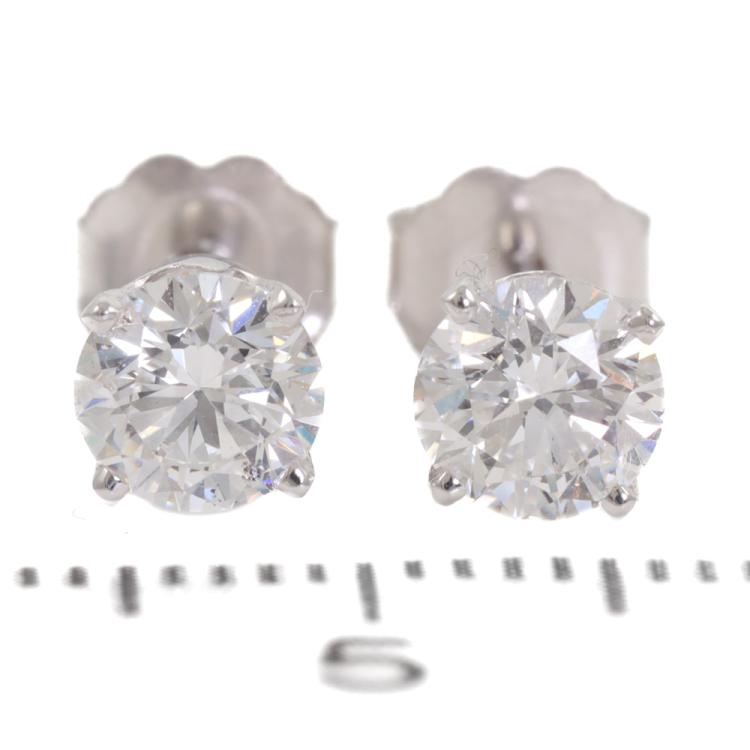 Diamond stud earrings with 2 round brilliant cut Natural Diamonds totalling 1.15ct (with GIA Summary Reports graded as D SI2 #5496821628, 2497782228). 18ct white gold. Weight: 1.2g. (New)