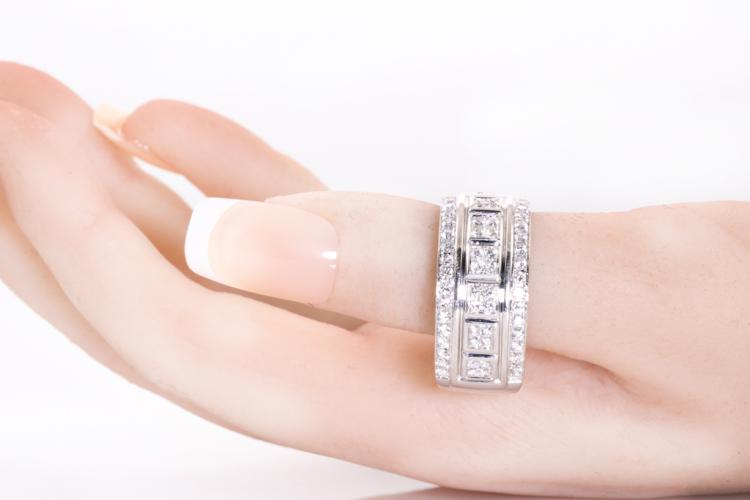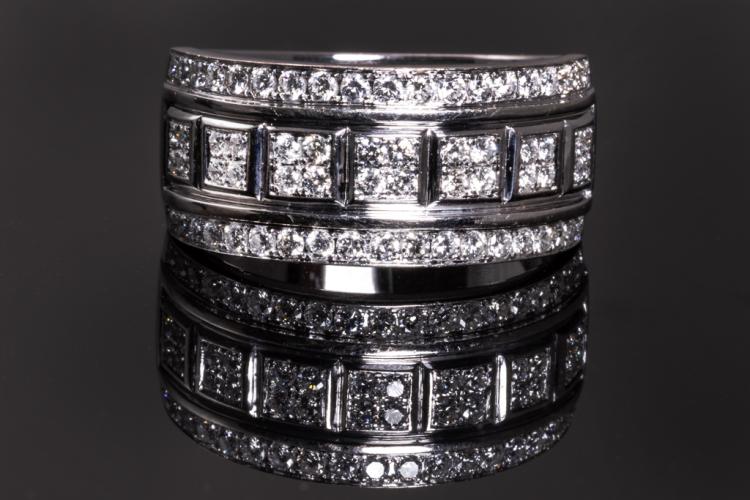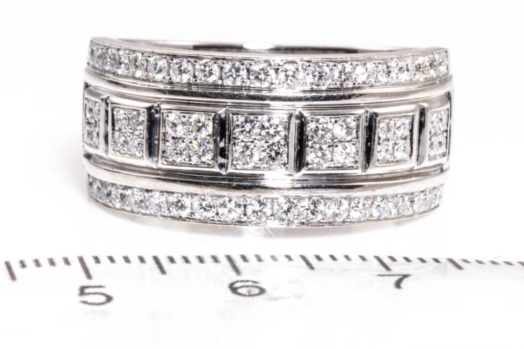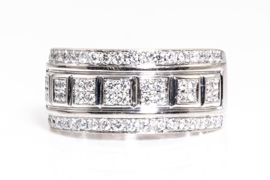 Diamond dress ring with round Diamonds totalling 1.18ct (Estimated grading: G SI). 18ct white gold. Ring size Y1/2. Weight: 15.7g (Pre-owned)