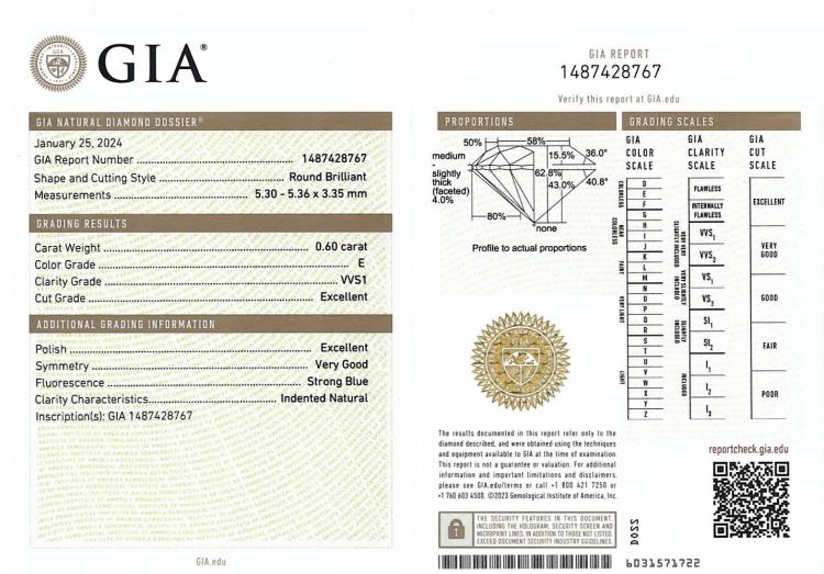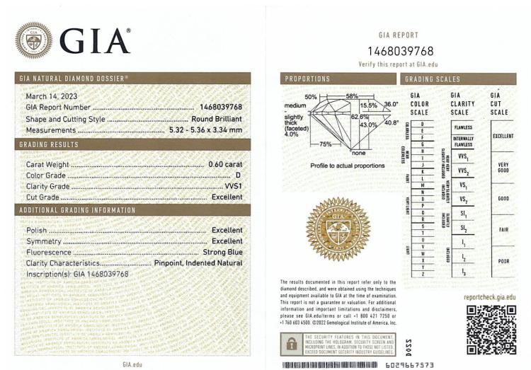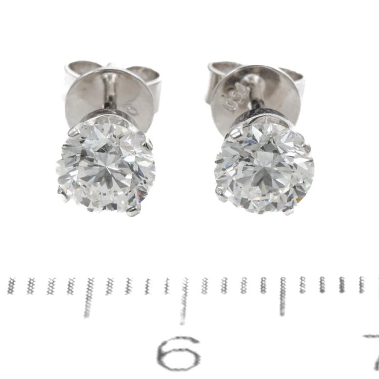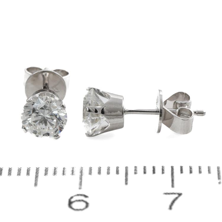 Diamond stud earrings with 2 round brilliant cut Natural Diamonds totalling 1.20ct (with GIA Summary Reports graded as D VVS1 #1468039768 & E VVS1 #1487428767). 18ct white gold. Weight: 1.5g. (New)