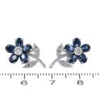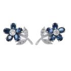Flower design earrings with 10 oval shape blue Natural Sapphires totalling approximately 1.20ct and round Natural Diamonds totalling approximately 0.10ct. 18ct white gold with silicon backs. Weight: 2.9g. (Pre-owned)