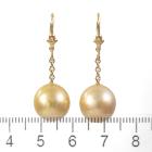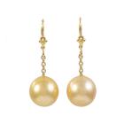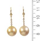 Pearl drop leverback earrings with Golden South Sea Pearls of 12mm. 18ct yellow gold. Weight: 6.3g. (Pre-owned)