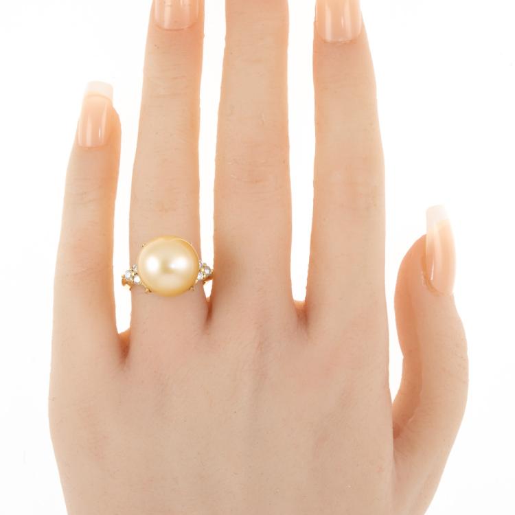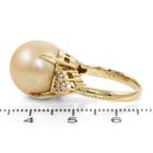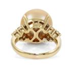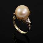 Pearl and Diamond ring with Golden South Sea Pearl of 13.6mm and round Natural Diamonds totalling 0.36ct (Estimated grading: H SI). 18ct yellow gold. Ring size K. Band width: 2.6mm. Weight: 8.9g. (Pre-owned)