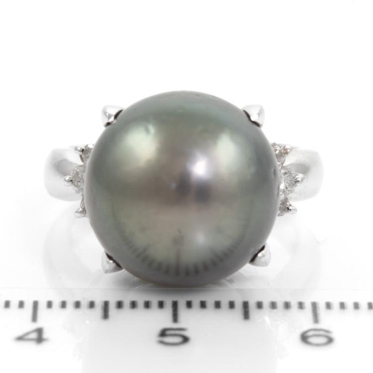 14.2mm Tahitian Pearl Diamond Ring