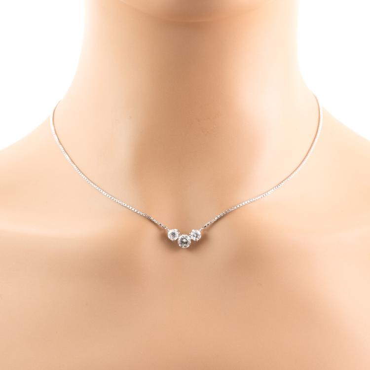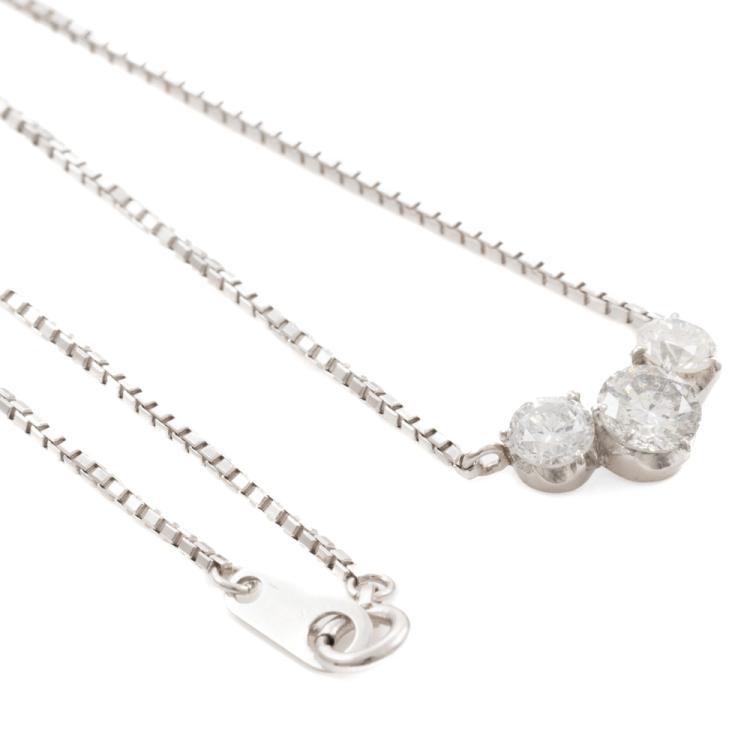 Diamond dress necklace with 3 round brilliant cut Natural Diamonds totalling 1.47ct (Estimated grading: GHI P1). Platinum 850 with platinum 850 chain attached. Length: 38.0cm - max 41.0cm. Weight: 7.0g. (Pre-owned)