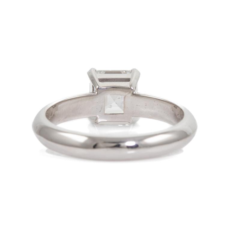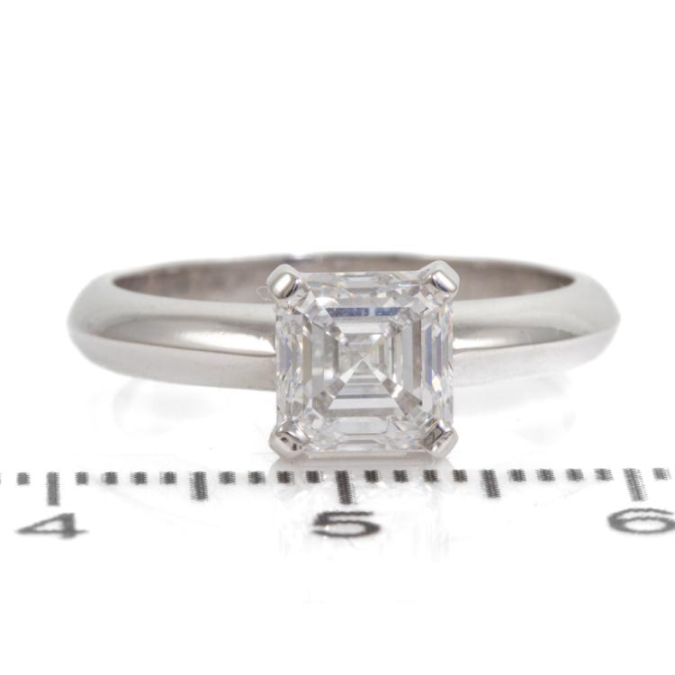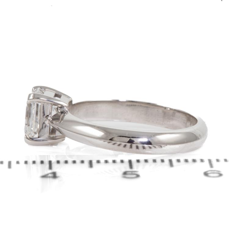 Diamond solitaire ring with square emerald cut natural Diamond of 1.50ct (with GIA Report graded as E SI1 #7441621416). 18ct white gold. Ring size L. Band width: 3mm. Weight: 4.7g. (New)