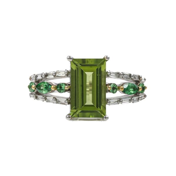 1.90ct Peridot, Tsavorite & Diamond Ring