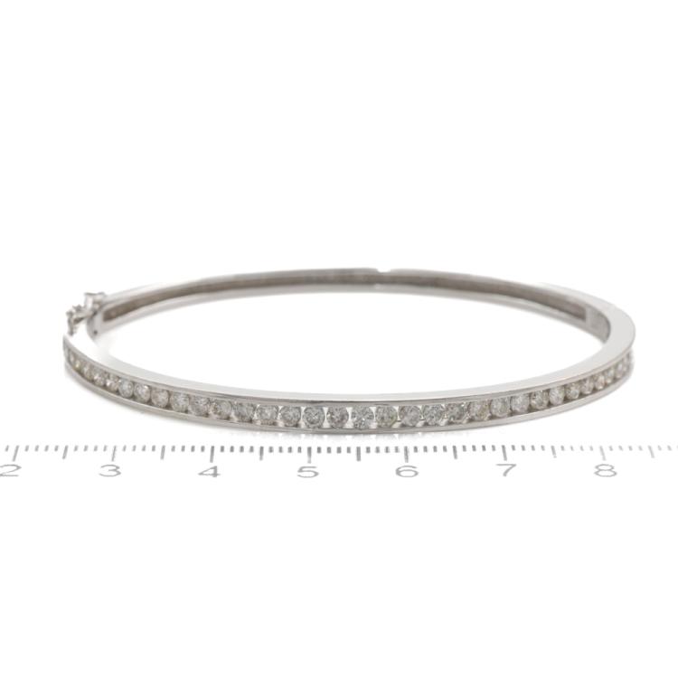 Diamond oval shape bangle with round Natural Diamonds totalling 2.00ct (Estimated grading: I-J SI-P1). 18ct white gold. Inner circumference: 16.5cm. Weight: 15.4g. (Pre-owned)