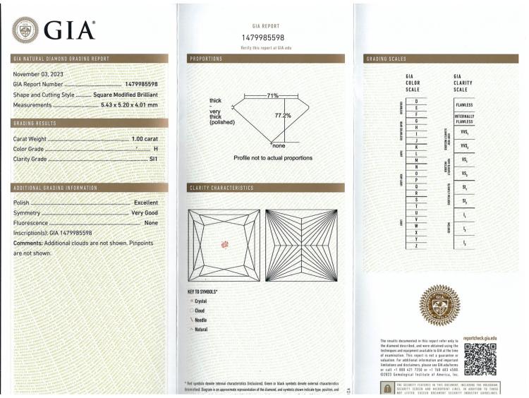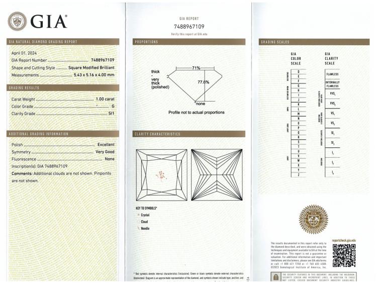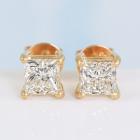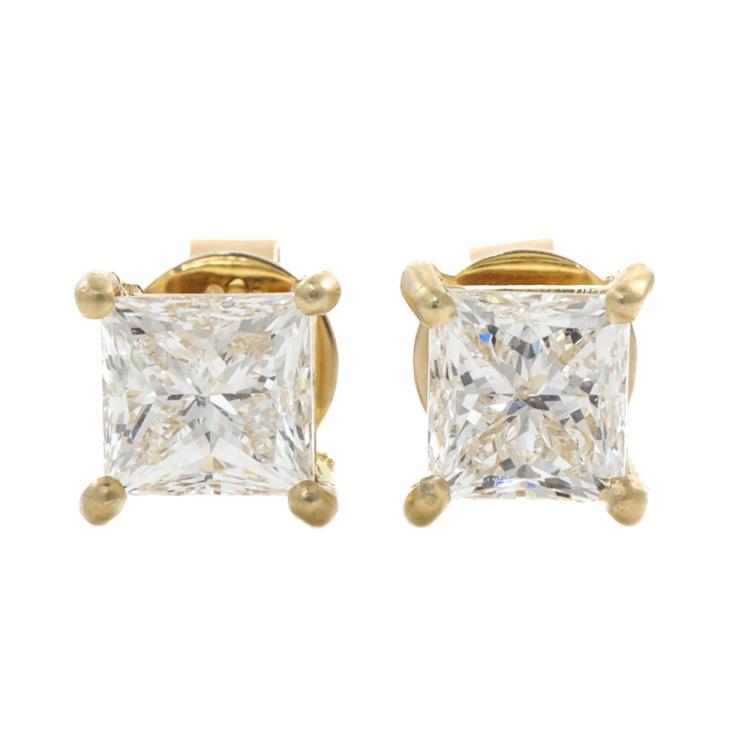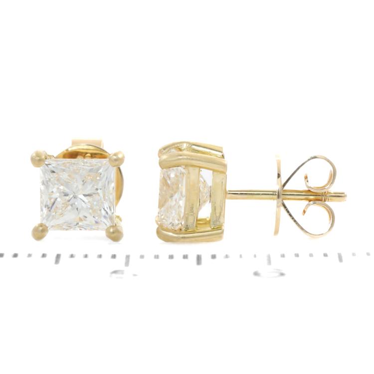 Diamond stud earrings with 2 princess cut Natural Diamonds totalling 2.00ct (both with GIA Reports graded as G SI1 #7488967109 & H SI1 #1479985598). 18ct yellow gold. Weight 2.8g. (New)