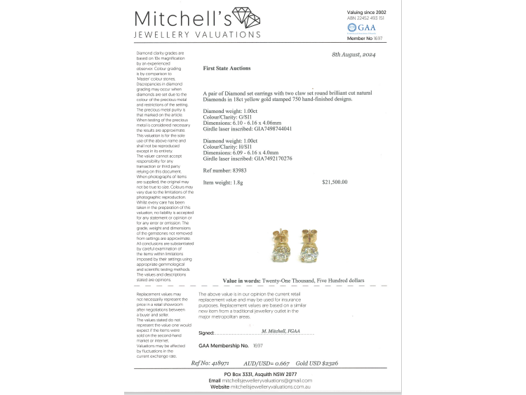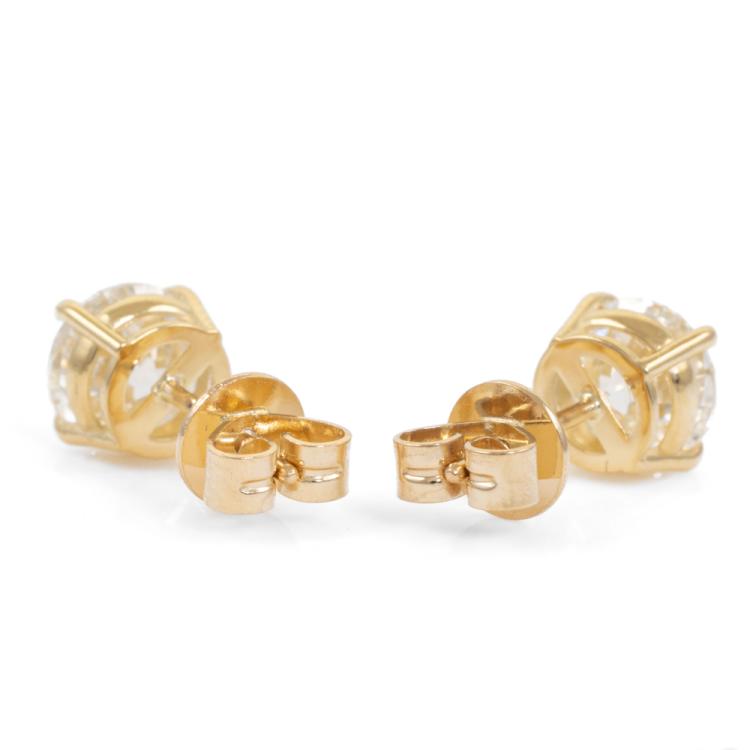 Diamond stud earrings with 2 round brilliant cut natural Diamonds totalling 2.00ct (both with GIA Reports graded as G SI1 #7498744041 & H SI1 #7492170276