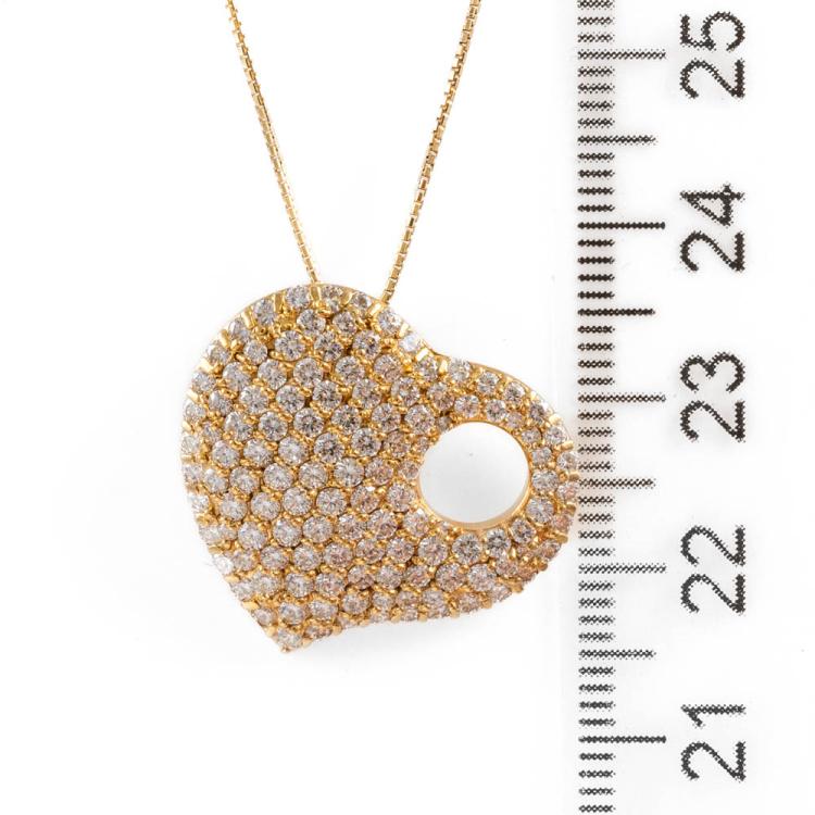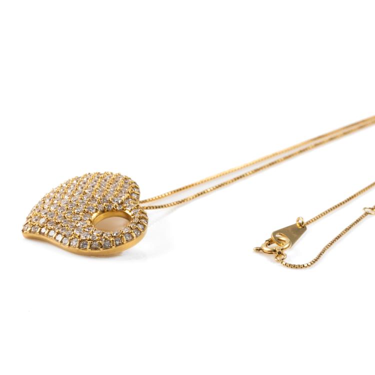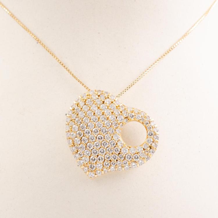 Diamond heart designed pendant with round Natural Diamonds totalling 2.11ct (Estimated grading: H-I SI). 18ct yellow gold with 40cm 18ct yellow gold chain. Weight: 8.9g. With Valuation Certificate #418453. (Pre-owned)