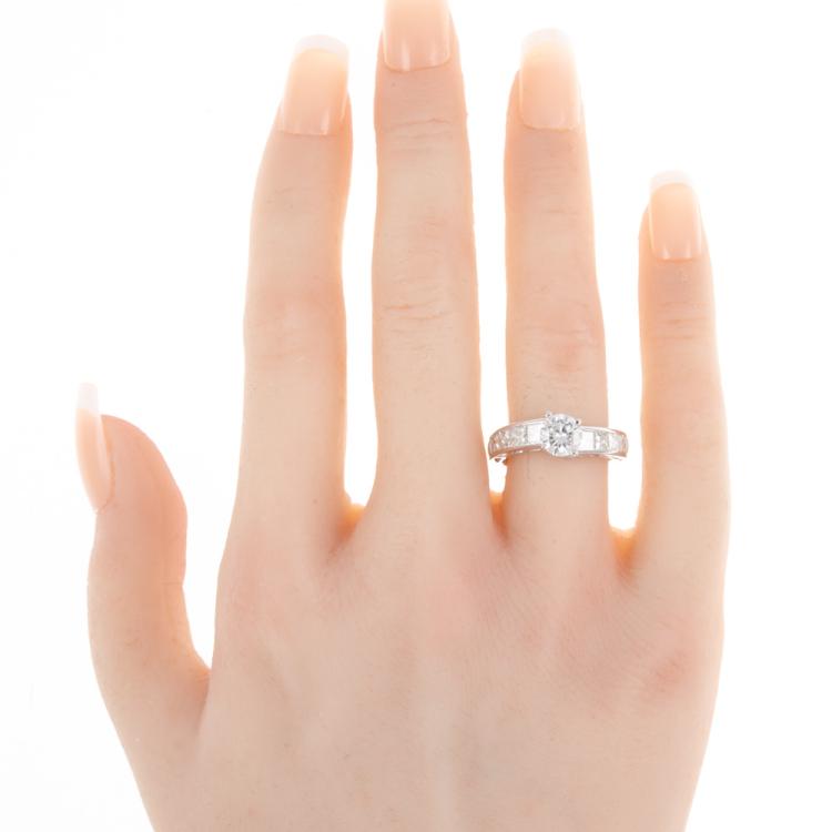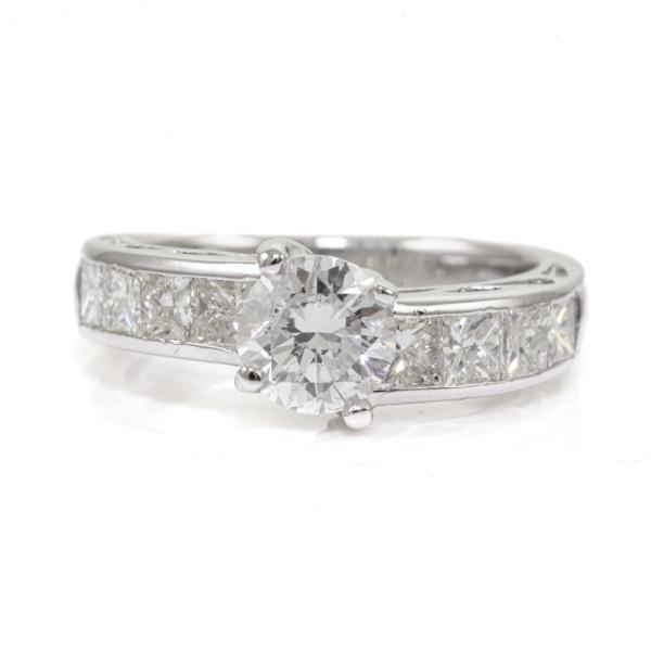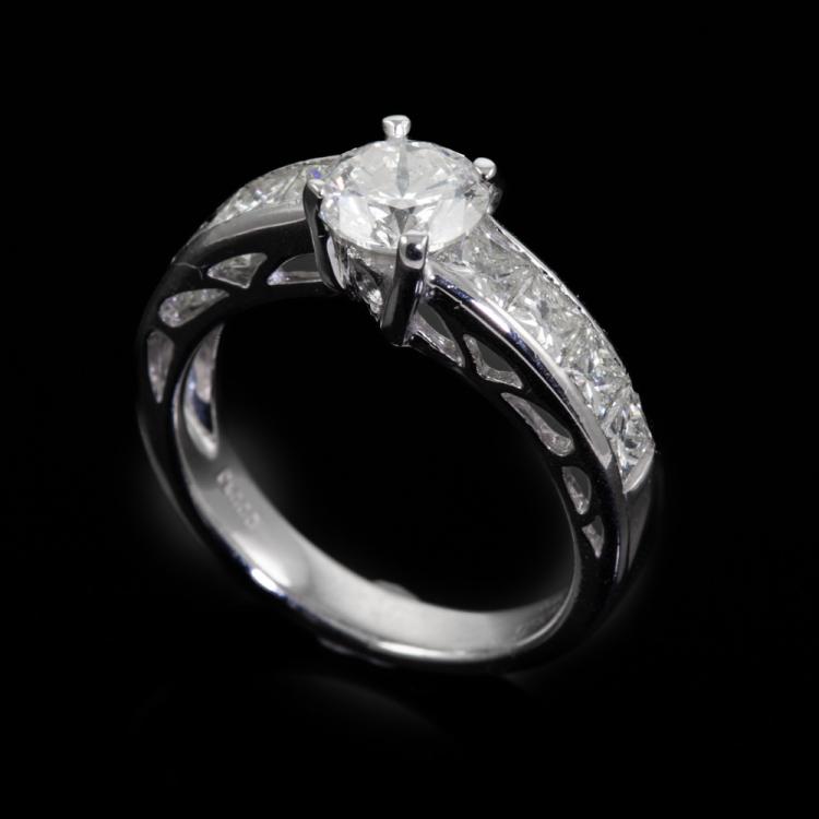 Diamond ring with a centre round Diamond of 1.03ct (With GSL memo graded as I P2 #GSL070322/8) and Princess cut Diamonds totalling 1.23ct (Estimated Grading: I SI-P1). Platinum-900. Weight: 6.3g. Ring size L1/2 - ring resizing is not recommended. (Pre-owned)