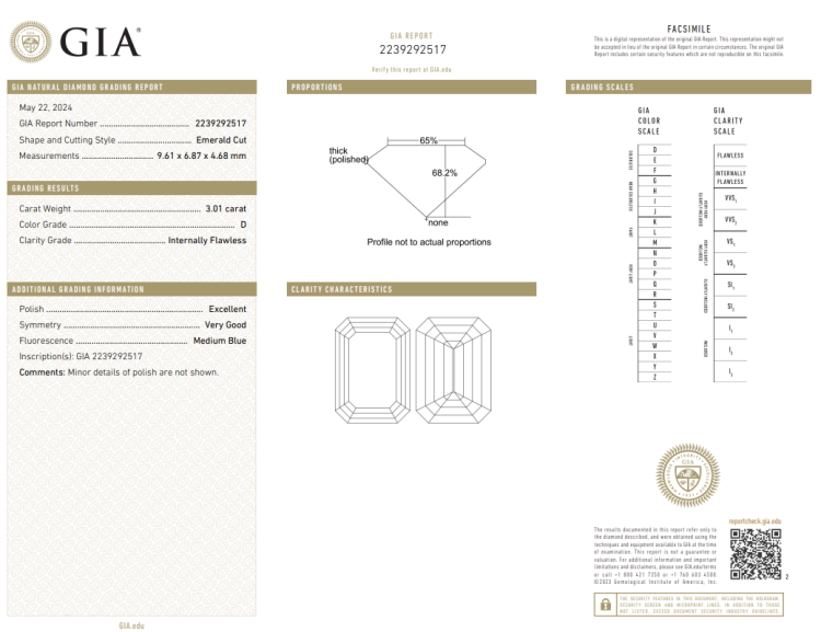 A loose emerald cut Natural Diamond of 3.01ct (with GIA report graded as D Internally Flawless #2239292517). (New)