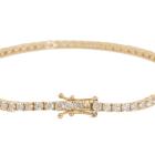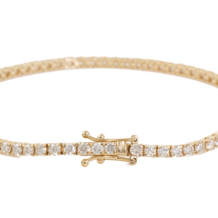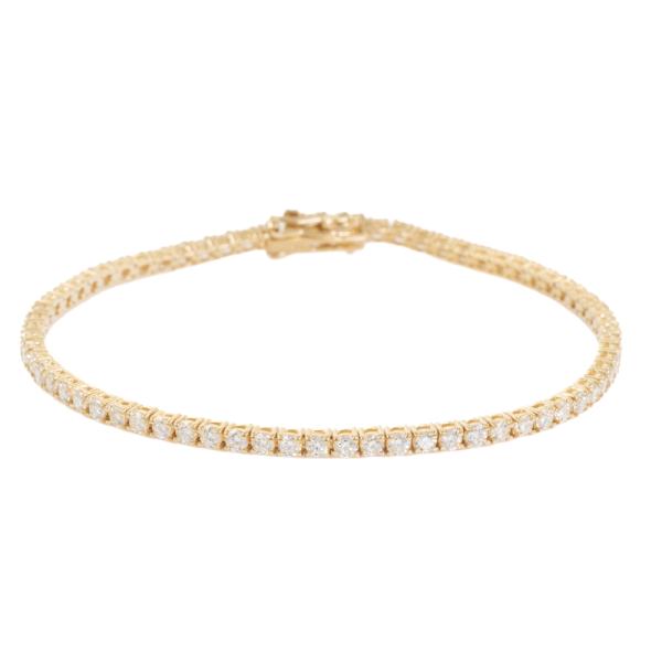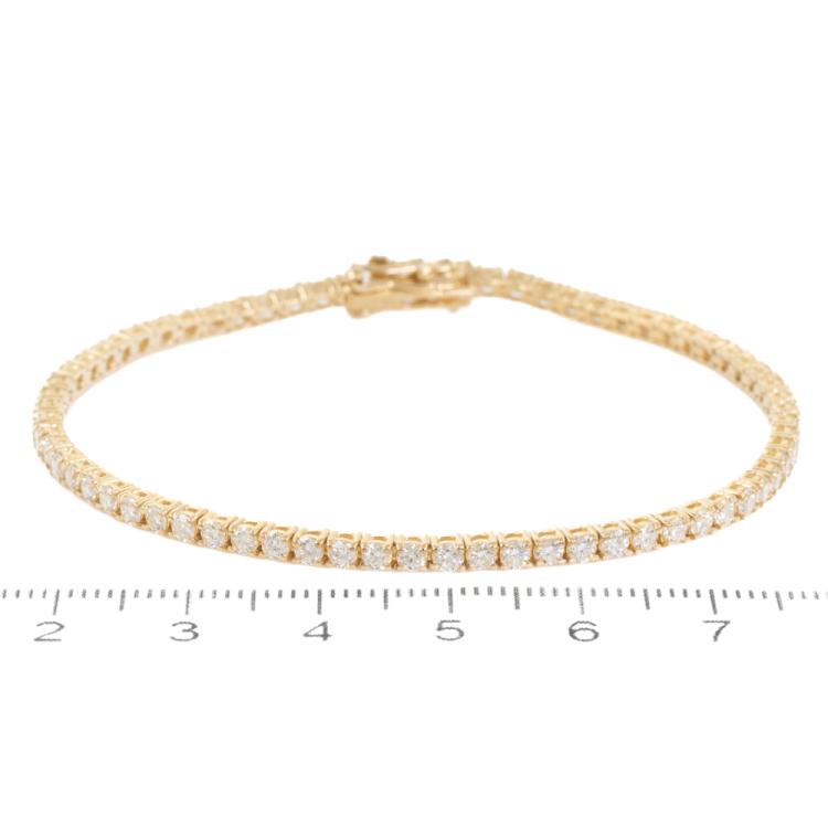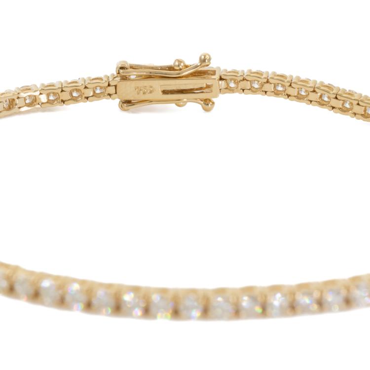 Diamond tennis bracelet with 69 round natural Diamonds totalling 3.36ct (Estimated grading: I-J SI). 18ct yellow gold. Length: 18cm. Weight: 8.6g. With Valuation Certificate #418901. (New)
