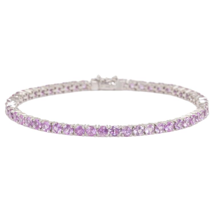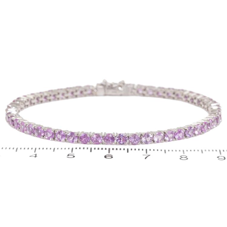 Sapphire and Diamond tennis bracelet with 52 round Natural pink Sapphire totalling approximately 4.00ct and 1 round Natural Diamond totalling of 0.07ct. 18ct white gold. Length: 17.5cm. Weight: 10.2g. (Pre-owned)