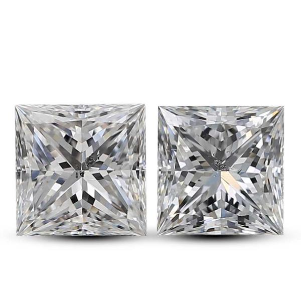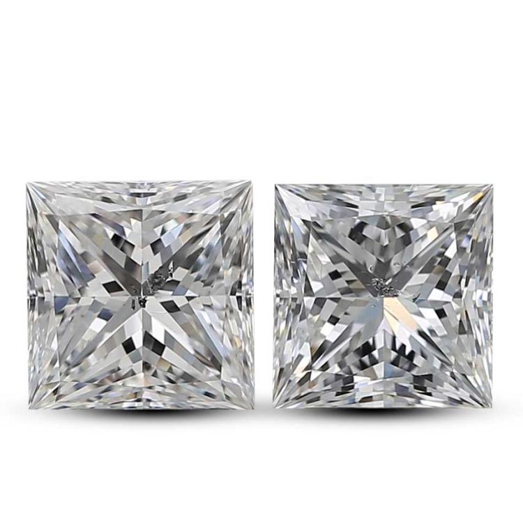 A pair of loose princess cut Natural Diamonds totalling 4.02ct (Both with GIA reports graded as F SI2 & G SI2 #1438659823 & 2494172851). (New)