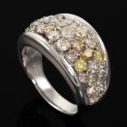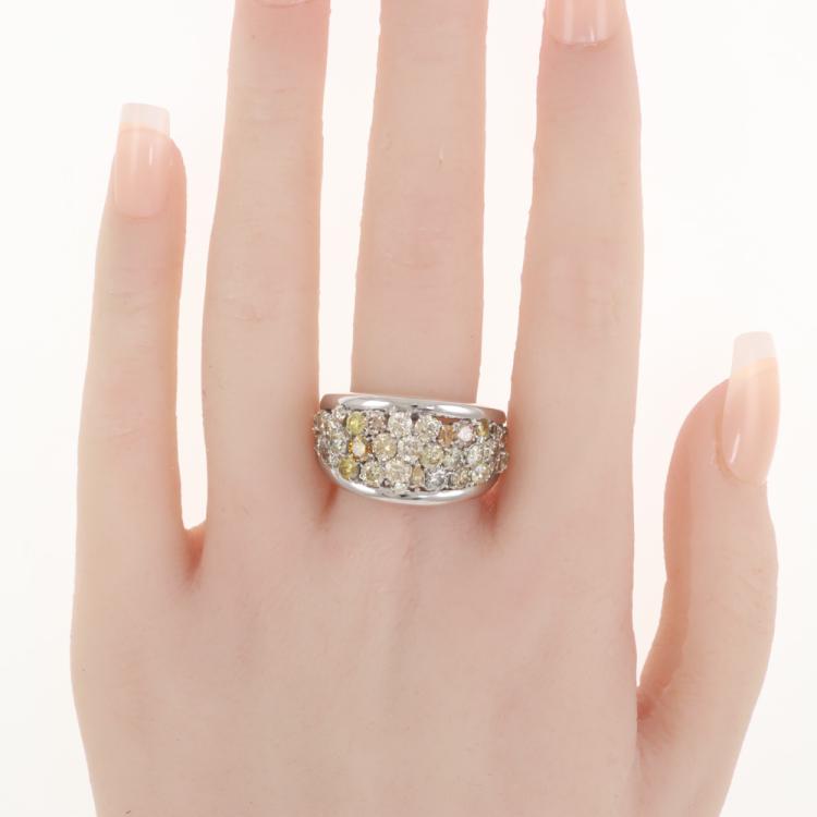 Diamond dress ring with round, oval & pear shape Natural Diamonds totalling 4.40ct (Estimated grading: Cognac, Champagne, Fancy Light Greenish Yellow, Fancy Intense Greenish Yellow, Yellowish Orange & K-M SI-P1). 18ct white gold. Ring size: U 1/2. Band width: 9.3mm - 4.2mm. Weight: 14.7g. With Certificate #419180. (Pre-owned)