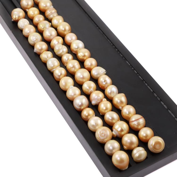 Parcel of 50 mixed, Loose, undrilled, Golden South Sea Pearls of approximately 11.6mm-15.2mm. Weight: 211.7g. (As New)