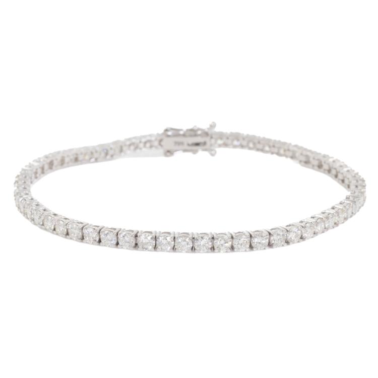 Diamond tennis bracelet with 57 round brilliant cut Natural Diamonds totalling 5.93ct (Estimated grading: I-J VS). 18ct white gold. Length: 18.5cm. Weight: 10.7g. With Valuation Certificate #418871. (New)
