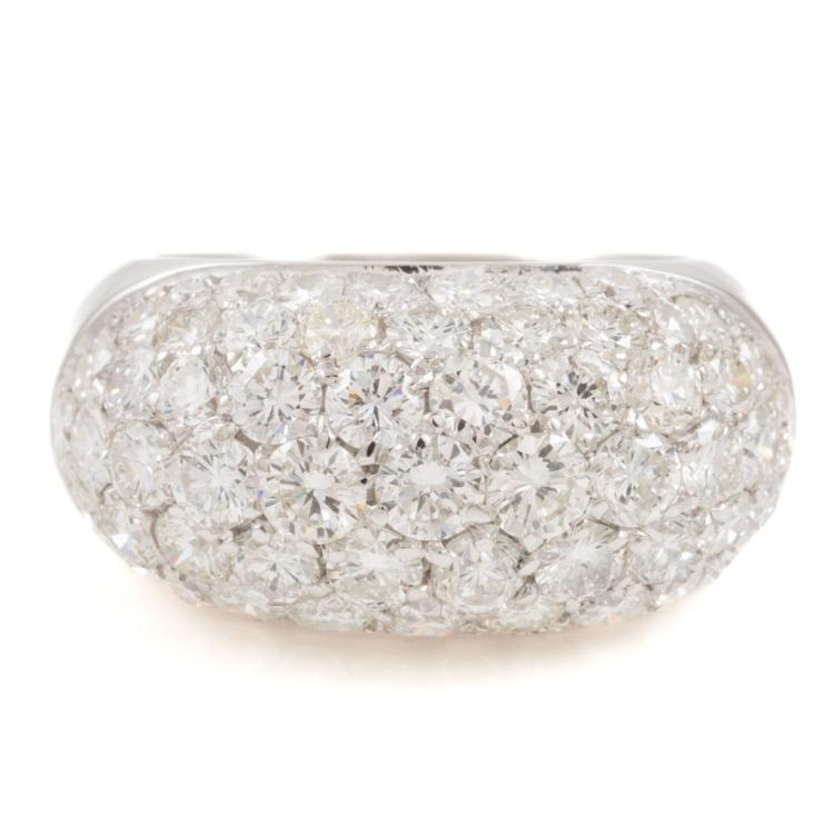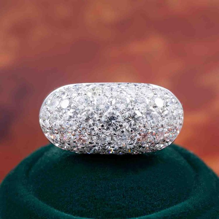 Diamond dress ring with round Natural Diamonds totalling approximately 6.00cts (Estimated grading: G-H VS-SI). 18ct white gold. Ring size: M1/2. Band width: 8.9mm - 5.7mm. Engraved with P Piavam. Weight: 11.9g. With Valuation Certificate #418159. (Pre-owned)