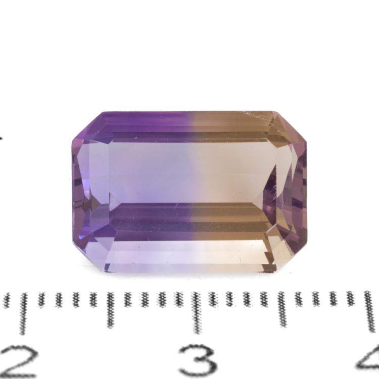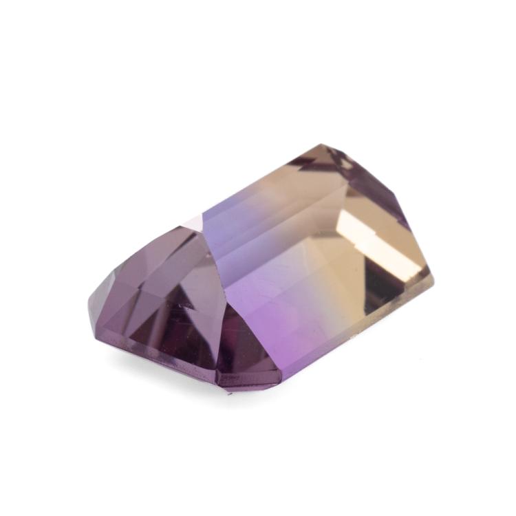 A parcel of loose emerald cut natural Ametrine of 7.07ct. Size: 14.08 x 10.06 x 6.97mm. (As new)