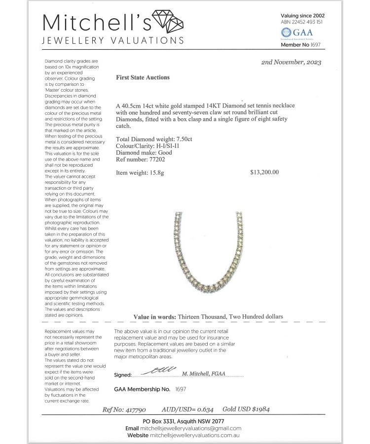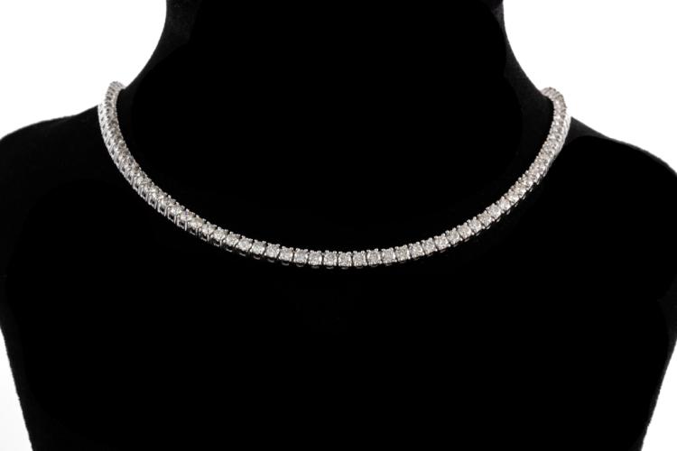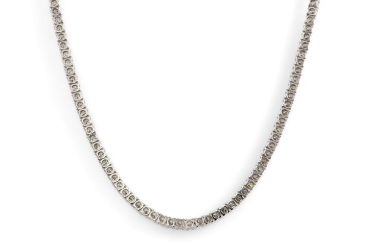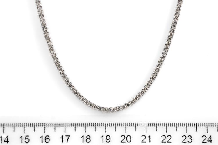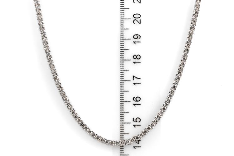 Diamond tennis necklace with 177 round Natural Diamonds totalling 7.50ct (Estimated grading: H-I SI-P1). 14ct white gold. Length: 40.5cm. Weight: 15.8g. With Valuation Certificate #417790. (New)