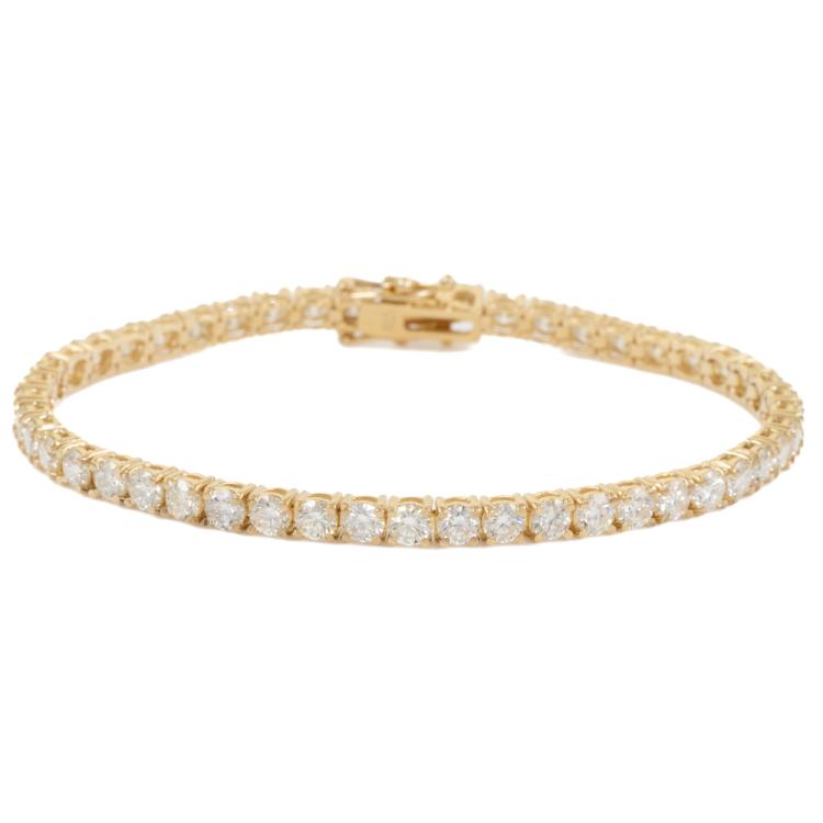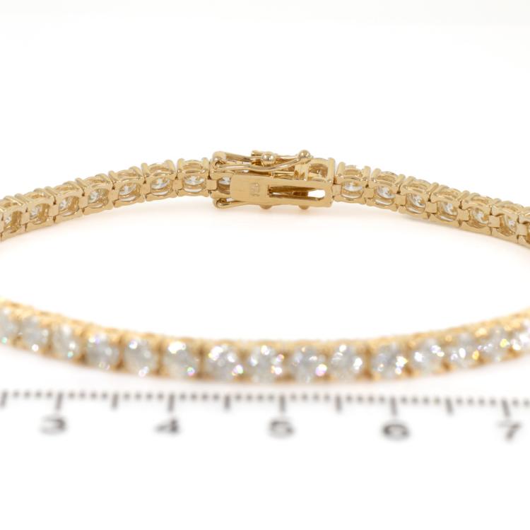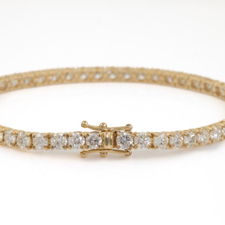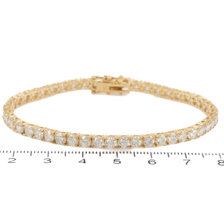 Diamond tennis bracelet with 48 round Natural Diamonds totalling 7.91ct (Estimated grading: J-K VS-SI). 18ct yellow gold. Length: 18cm. Weight: 12.9g. With Valuation Certificate #418817. (New)