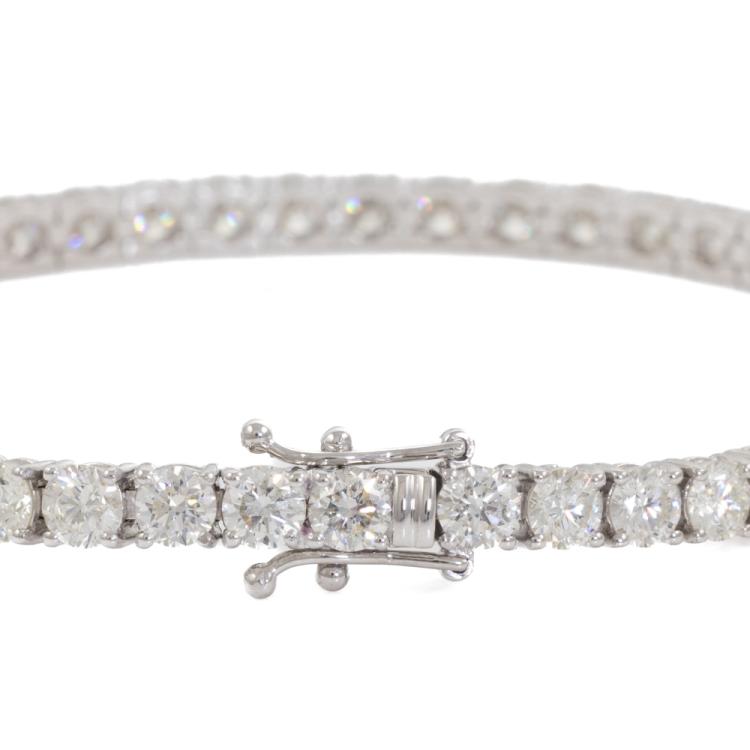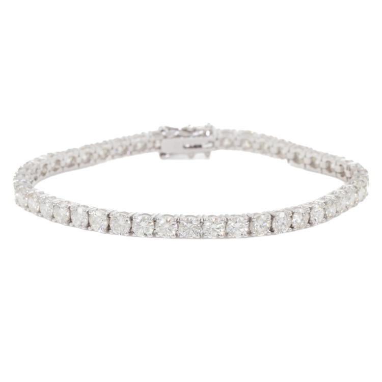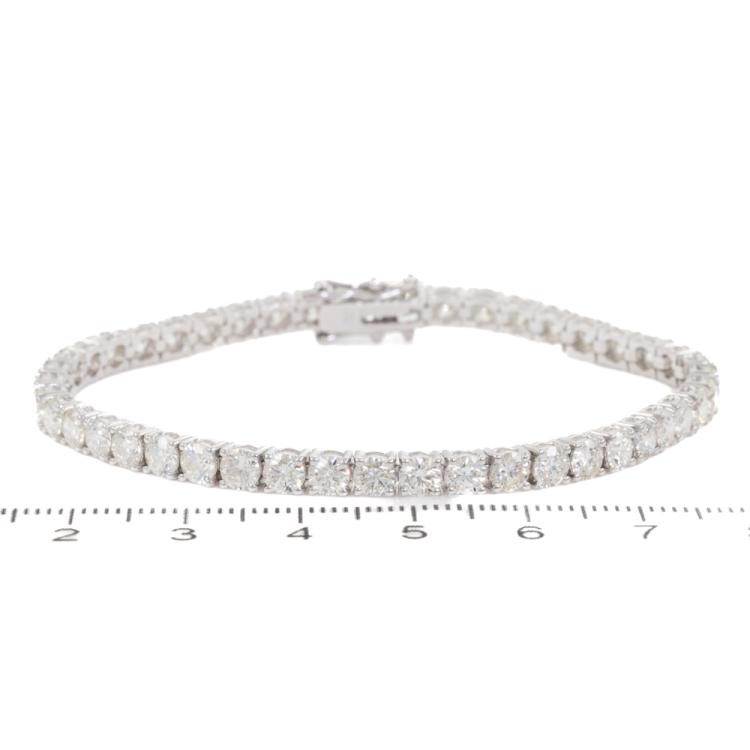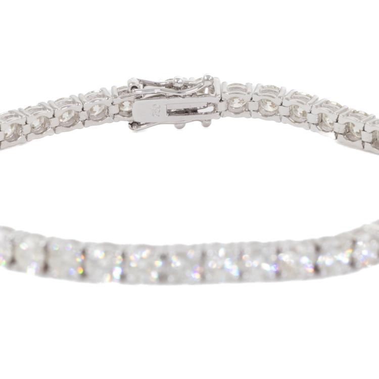 Diamond tennis bracelet with 45 round Natural Diamonds Totalling 9.35ct (Estimated grading I-J VS-SI). 18ct white gold. Length: 18cm. Weight: 13.1g. With Valuation Certificate #418944 (New)