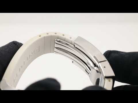 Breitling Superocean II stainless steel automatic mens watch. White dial, date, case diameter: 42mm, max wrist size: 17cm, Swiss made. Ref# A17365. With Breitling white rubber strap and clasp. With Certificate of Authenticity. 3 month FSA warranty (Pre-owned).