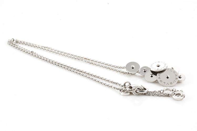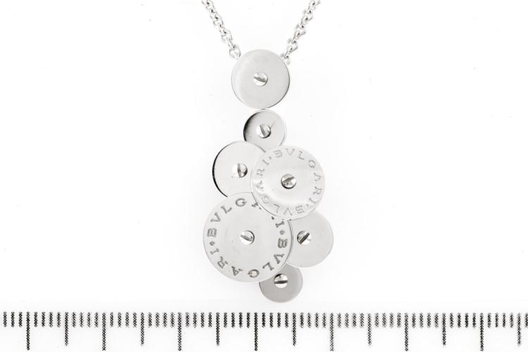Bvlgari Cicladi rotating disc pendant. 18ct white gold with 45cm Bvlgari 18ct white gold adjustable chain. Weight: 15.2g. (Pre-owned)