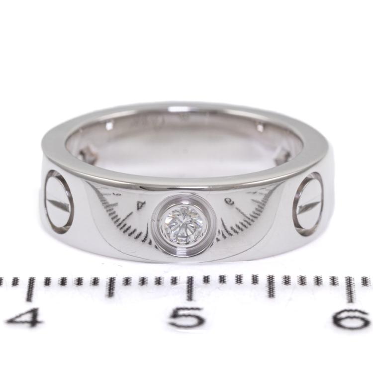 Cartier Love ring with 3 round Natural Diamonds totalling 0.22ct. 18ct white gold. Cartier stamped size 48, actual ring size I1/2 - ring resizing is not recommended. Band width: 5.5mm. Weight: 7.8g. (Pre-owned)
