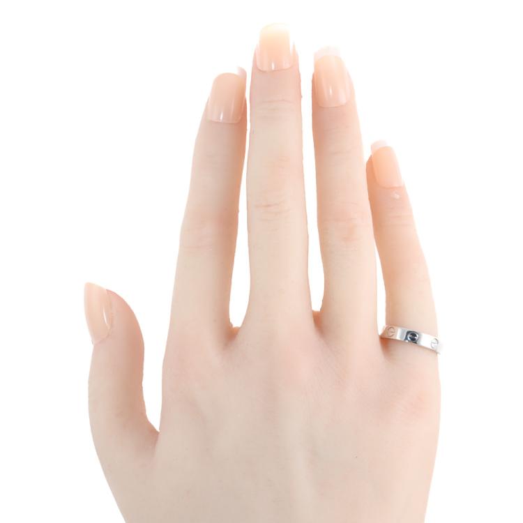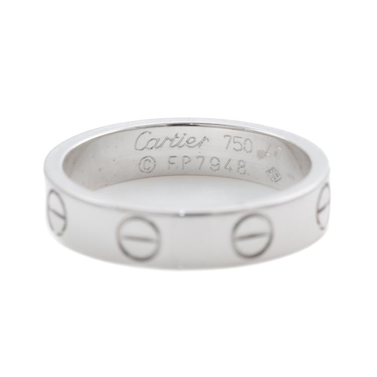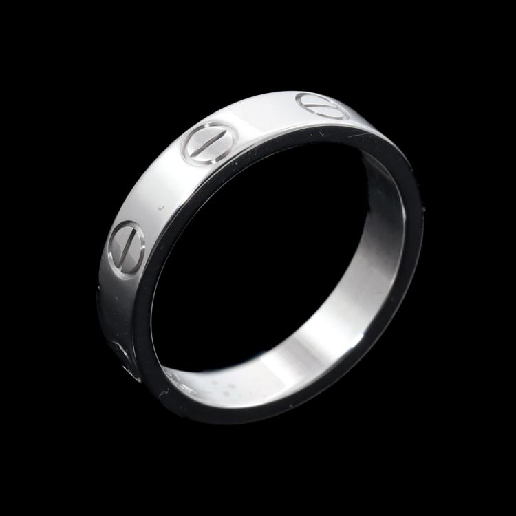 Cartier Love ring, small model. 18ct white gold. Cartier stamped size 47, actual size H - ring resizing is not recommended. Band width: 3.6mm. Weight: 3.6g. (Pre-owned)