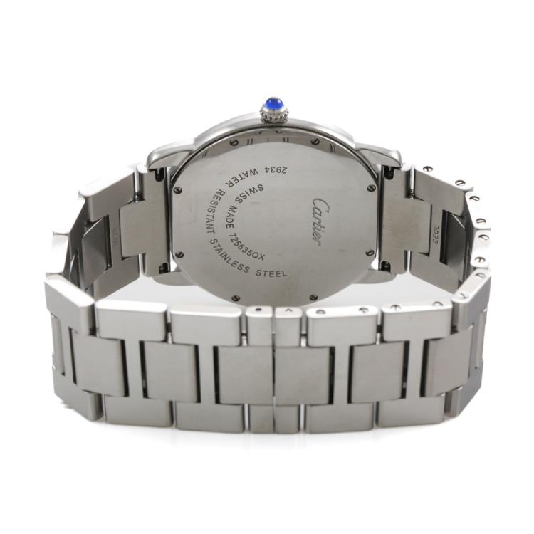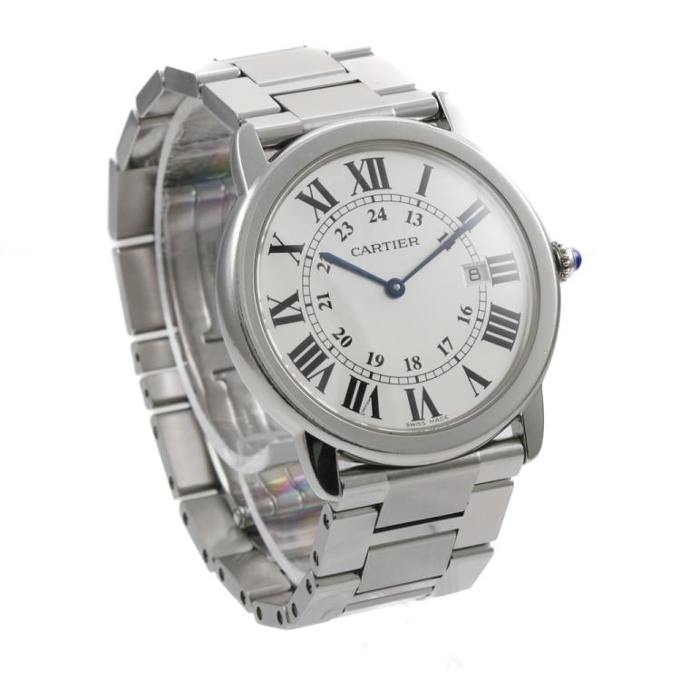 Cartier Ronde Solo stainless steel quartz watch. Silver dial, date, case diameter: 36mm, wrist size: 15.5cm, Swiss made. Ref# W6701005/2934. With Cartier stainless steel bracelet and clasp. With Certificate of Authenticity. 3 month FSA warranty (Pre-owned)