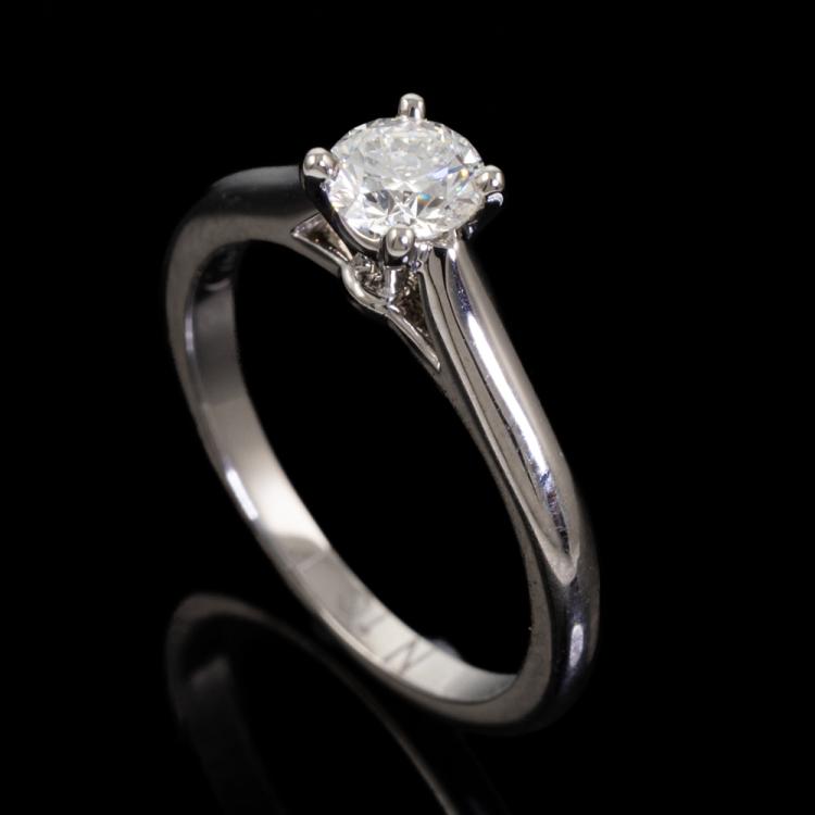 Cartier Solitaire 1895 ring with a round brilliant cut Natural Diamond of 0.33ct (GIA# 7216603630 graded as H VS1). Platinum 950. Cartier Stamped size 46, G1/2 - ring resizing is not recommended. Band width: 1.6mm-2.1mm. Weight: 3.3g. With Cartier Authenticity Certificate dated 02/09/16 and Cartier box. (Pre-owned)