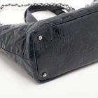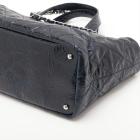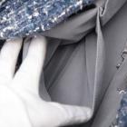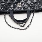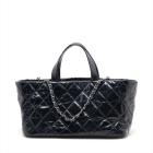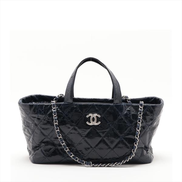 Chanel Portobello 2way bag in aged patent calfskin in Navy. Featuring diamond quilting on leather, double flat handles, silver tone hardware, interlocking CC logo at front. This bag has a tweed top with a magnetic button closure. The interior lined by fabric with zipper and patch pockets. Approximate dimensions: 32cm(W) x 17cm(H) x 14cm(D), 11cm handle drop and 25cm shoulder height Accompanied by Chanel Certificate card. With Entrupy Certificate of Authenticity. (Pre-owned)