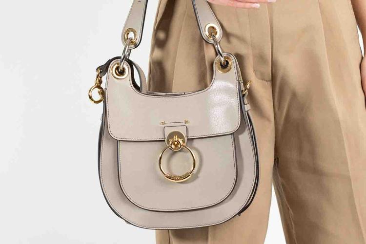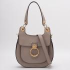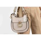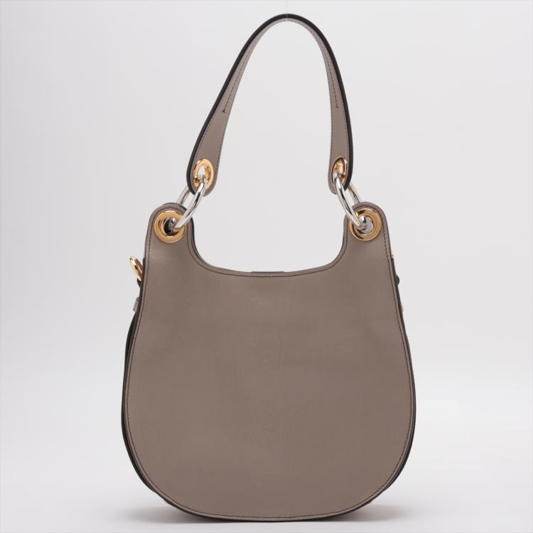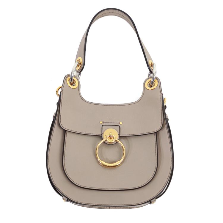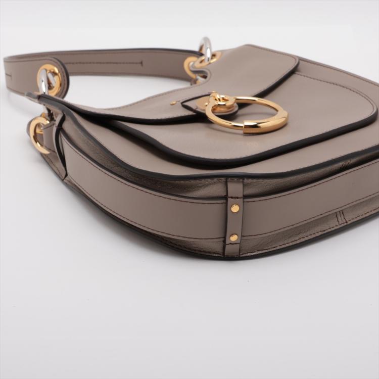 Chloe small Tess hobo bag in Motty Grey leather. Featuring gold & silver toned hardware, an outer flap with ring detail opens to an exterior pocket, large handle anchors on sides. The top with magnetic button opens to a beige interior with a slip pocket. Approximate dimensions: 25cm(L) x 22.5cm(H) x 5cm(D), 23cm handle drop and 54cm shoulder strap drop. Accompanied by Chloe tag and certificate card. With Entrupy Certificate of Authenticity. (Pre-owned)