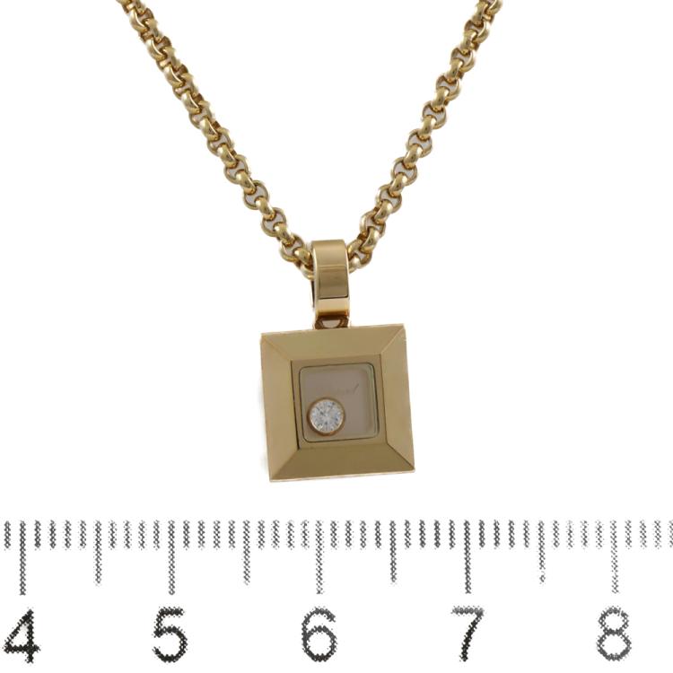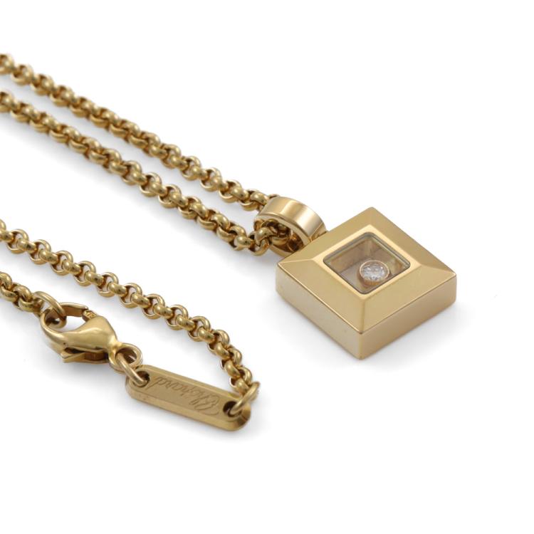 Chopard Happy Diamonds Icons pendant with one floating round natural Diamond of approximately 0.04ct. Motif size: 10.1mm x 10.1mm. 18ct yellow gold with 42.5cm 18ct yellow gold Chopard chain. Weight: 13.3g. (Pre-owned)