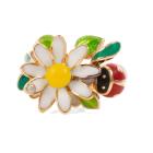 Christian Dior Small Diorette Diamond Enamel Lacquer Ring, features a vibrant floral arrangement accented with a ladybug, gold, lacquer and enamel and a round natural Diamond of 0.04ct. 18ct yellow gold. Christian Dior stamped ring size 48, actual size I1/2 - ring resizing is not recommended. Minimum band width: 2.25mm. Weight: 10.4g. With Christian Dior Authenticity Card dated 23/09/10. (Pre-owned)
