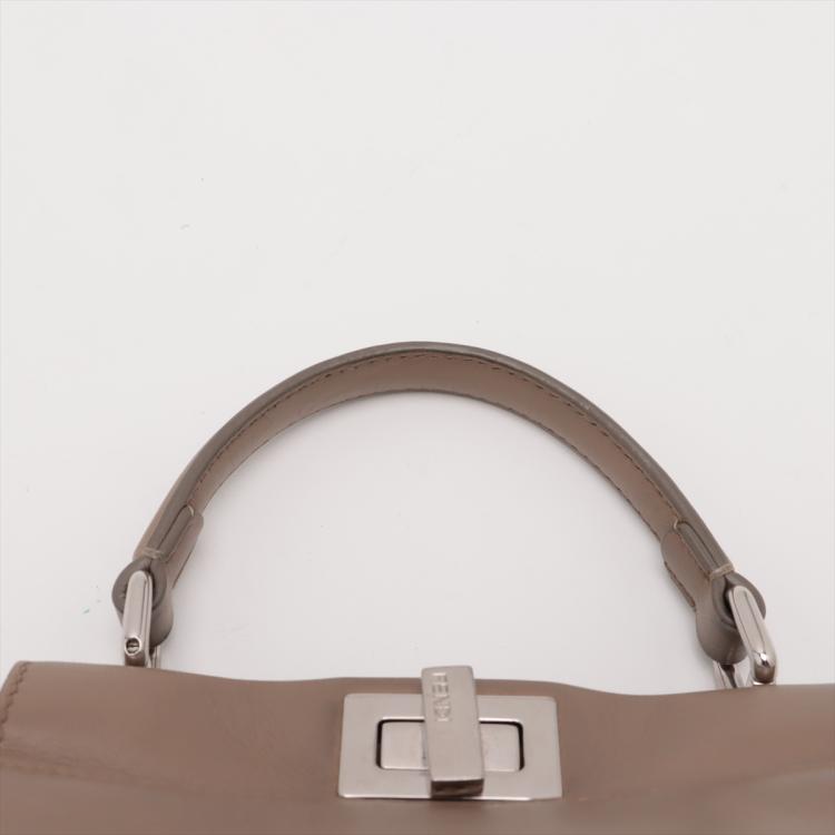 Fendi mini Peekaboo 2Way bag in beige Nappa leather. Featuring silver-tone hardware, single leather handle, turn-lock closures at front and back. The top opens to two compartments lined in colour matching Nappa leather and with zipped and patch pockets. Approximate dimensions: 23cm(L) x 18cm(H) x 11cm(D), handle drop: 9.5cm, detachable strap drop: 65cm. With Entrupy Certificate of Authenticity. (Pre-owned)