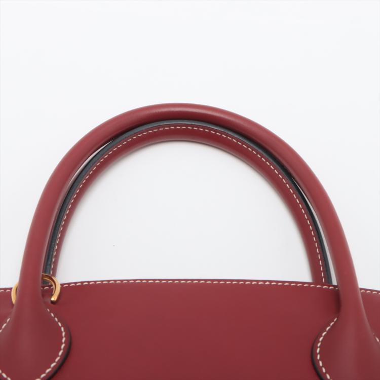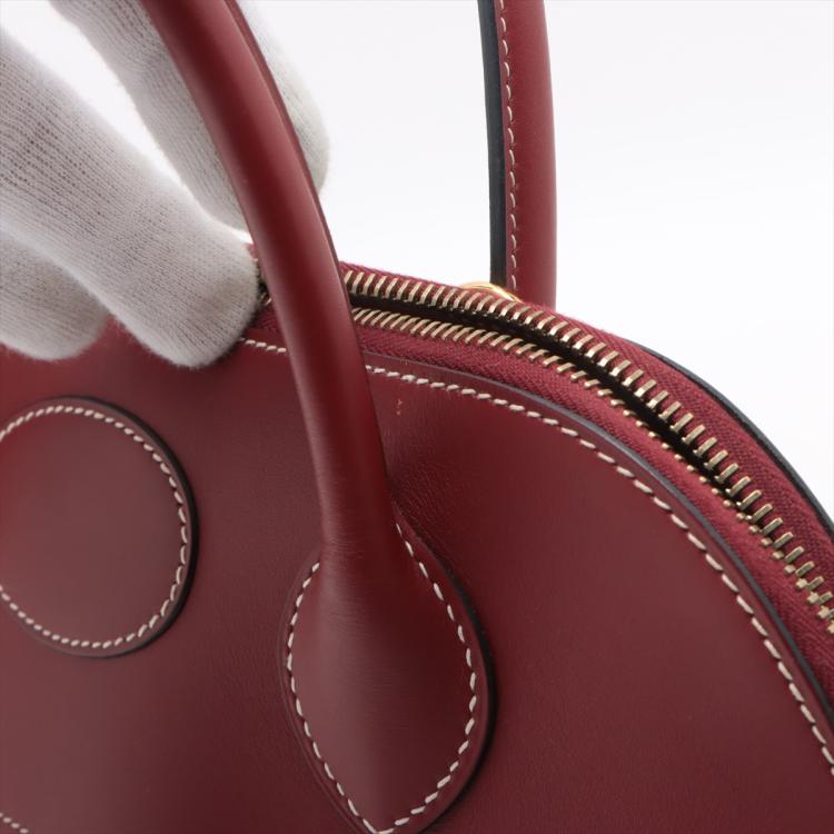 Hermès Bolide 31 handbag in Rouge H Box Calf leather. (square F: 2002). Featuring gold-toned hardware, double top handles, and padlock with two keys inside a clochette. The zipper top opens to a matching dark red smooth leather lining interior with a patch pocket. Approximate dimensions: 31.5cm(L) x 24.5cm(H) x 12.5cm(D), handle drop 10cm. Accompanied by a Hermès dustbag. (NOTE: shoulder strap NOT included.) With Entrupy Certificate of Authenticity. (Pre-owned)