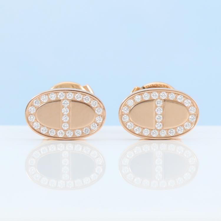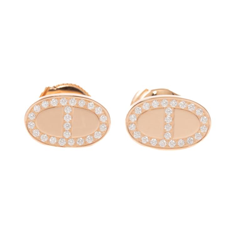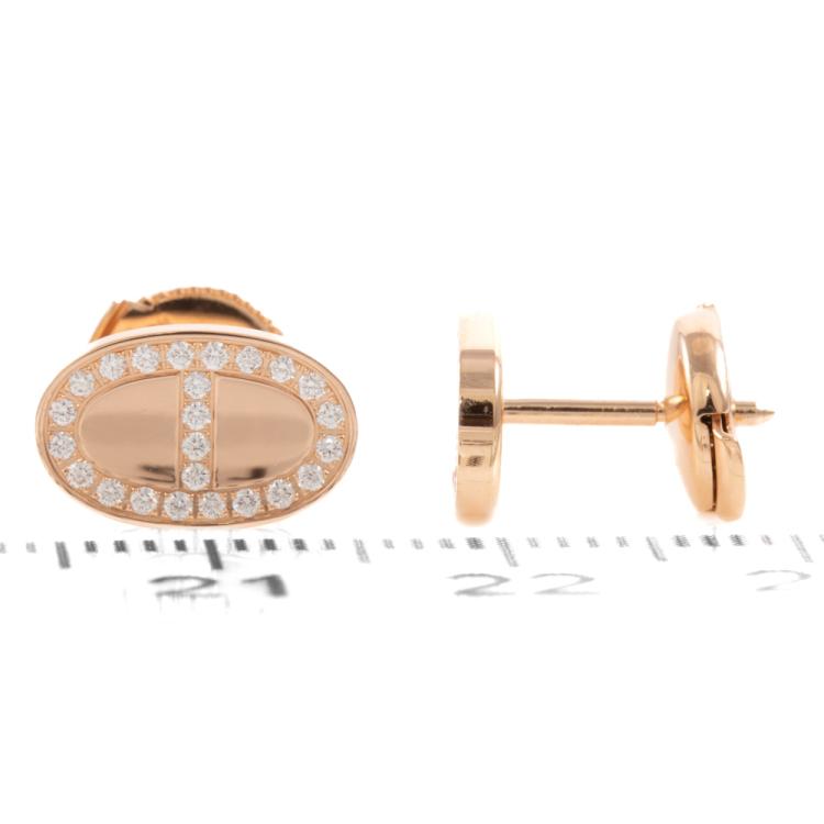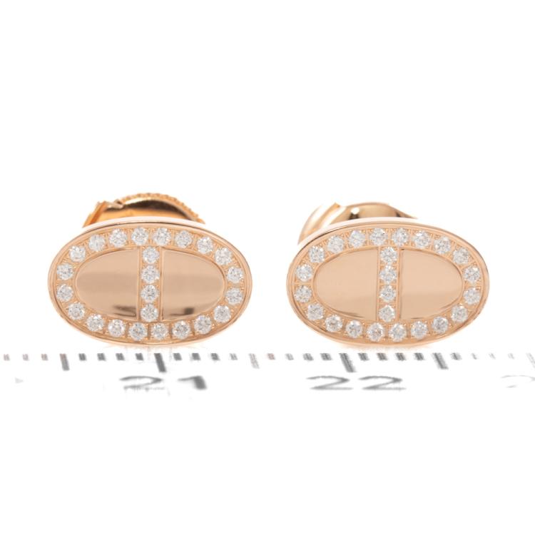 Hermes Chaine D Ancre Contour stud earrings with 48 round Natural Diamonds totalling 0.18ct (with Hermes Certificate graded as F-G VVS #22A550060). Dimensions: 1.1cm x 0.7cm. 18ct rose gold. Made in France. Weight: 3.9g. With Hermes Box and Hermes Certificate dated 23/09/2001 (Pre-owned)
