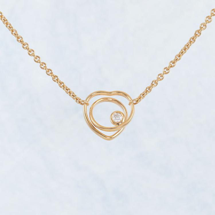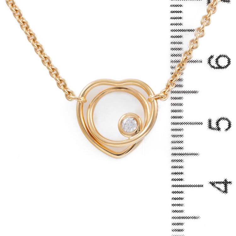 Hermes Vertige Coeur necklace with a round Natural Diamond of 0.05ct. 18ct rose gold with attached adjustable chain. Made in France. Length: Maximum 40cm. Motif size: 1.4 x 1.4cm Weight: 6.9g. With Hermes box (Pre-owned)
