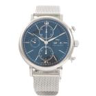 IWC Schaffhausen Portofino stainless steel automatic mens watch. Black chronograph dial, day & date, case diameter: 42mm, adjustable max wrist size: 20cm, Swiss made. Ref# IW391006. With IWC Schaffhausen stainless steel bracelet and clasp. With spare black leather strap and IWC buckle. With Certificate of Authenticity and IWC Schaffhausen International Warranty card dated 04/01/2013. 3 month FSA warranty. (Pre-owned)