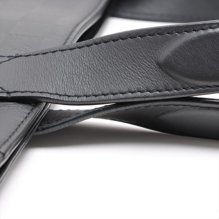 Louis Vuitton Cabas Voyage tote in Damier patterned and smooth leather in black. Featuring dual leather shoulder straps, an external zipper pocket, black tone hardware, open top. The top opens to a black fabric lining interior with zipper and patch pockets. Approximate dimensions: 40cm(L) x 32cm(H) x10.5cm(D), 25cm handle drop. Accompanied by a LV dust bag. With Entrupy Certificate of Authenticity. (Pre-owned)