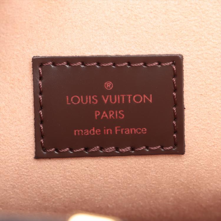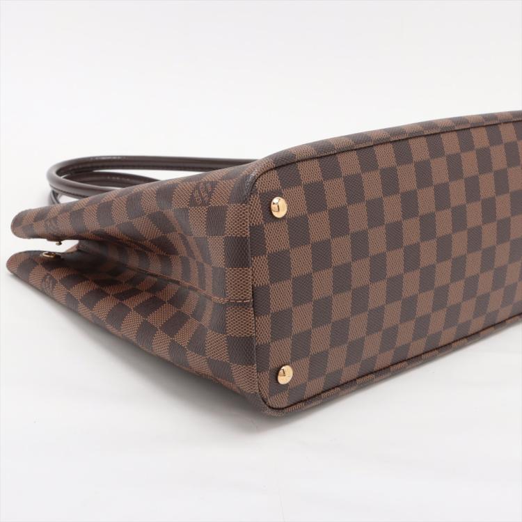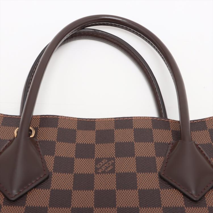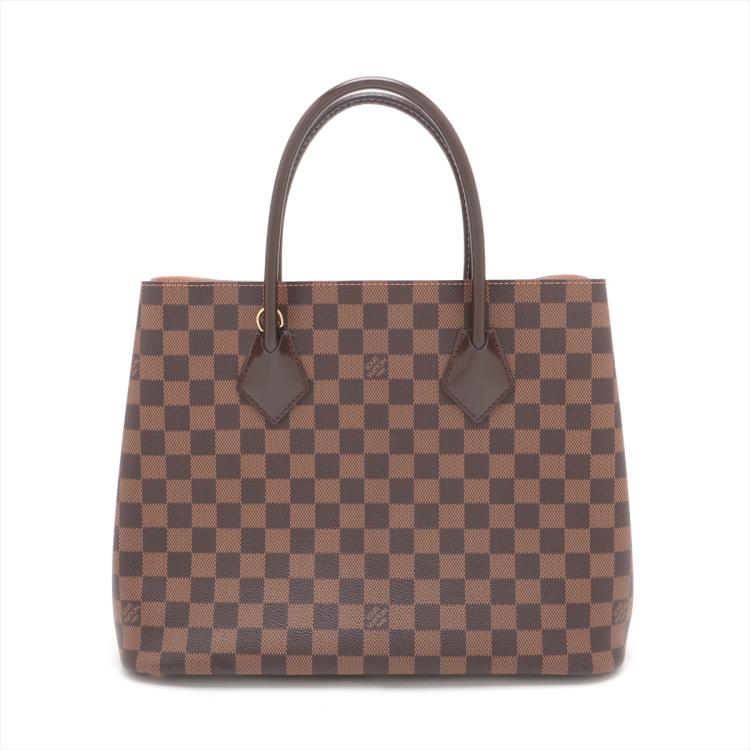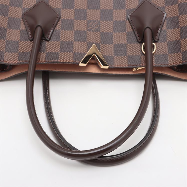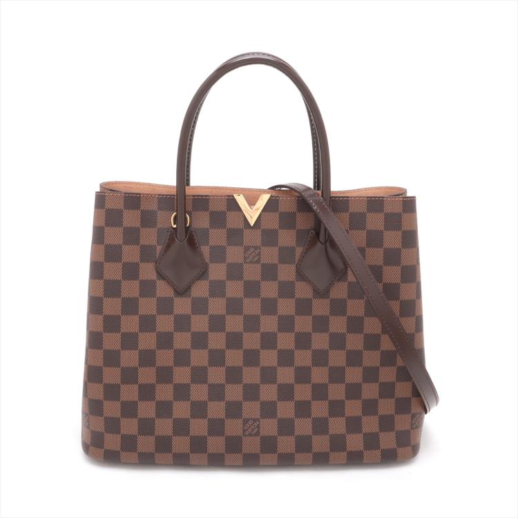Louis Vuitton Kensington bag in Damier coated canvas. Featuring gold-toned hardware, dual leather handles, exterior "V" signature, exterior snap buttons on sides, and a detachable shoulder strap. The top opens to a beige microfiber lining interior with two compartments divided by a zipper pocket. Approximate dimensions: 34cm(Base-L) x 26cm(H) x 15cm(D), handle drop 12cm, strap drop 39cm. With Entrupy Certificate of Authenticity. (Pre-owned)