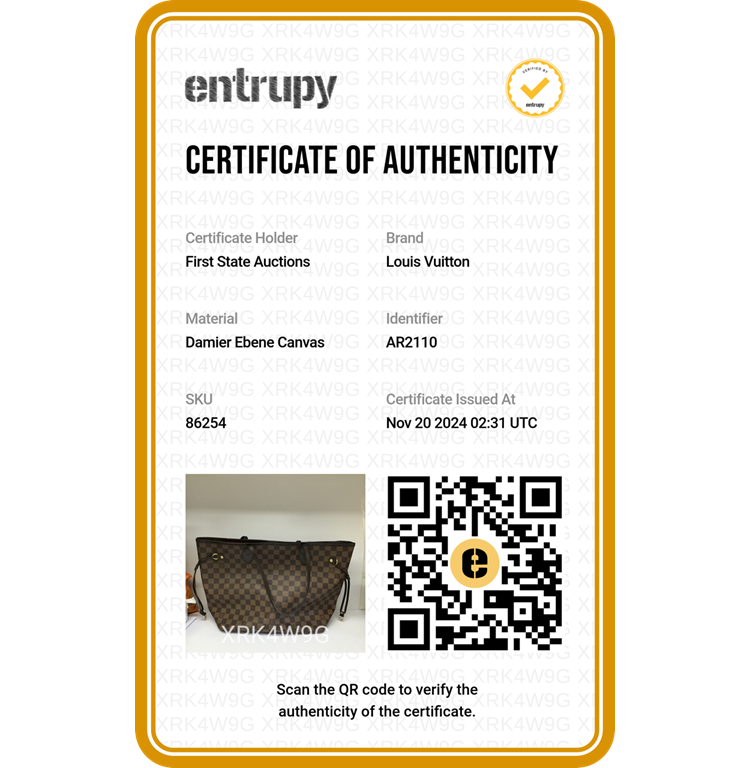 Louis Vuitton Neverfull MM tote in Damier Ebene coated canvas with natural brown cowhide trim. Featuring gold-toned hardware, side laces, and double flat leather handles. The open top with a hook closure opens to a red striped textile lining with a zipper pocket. Approximate dimensions: 31.5cm(L) x 28.5cm(H) x 16cm(D), handle drop 16cm. Accompanied by a LV dustbag. With Entrupy Certificate of Authenticity. (Pre-owned)