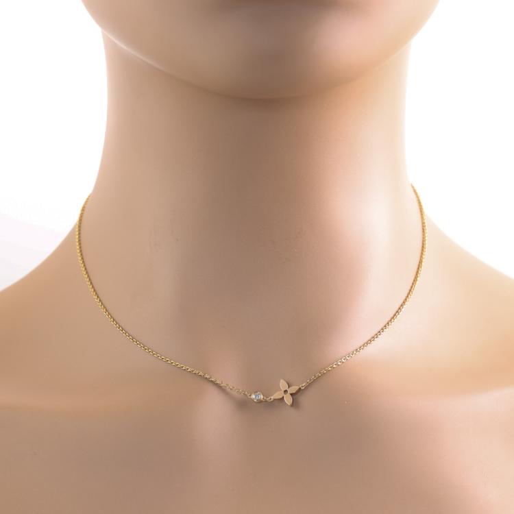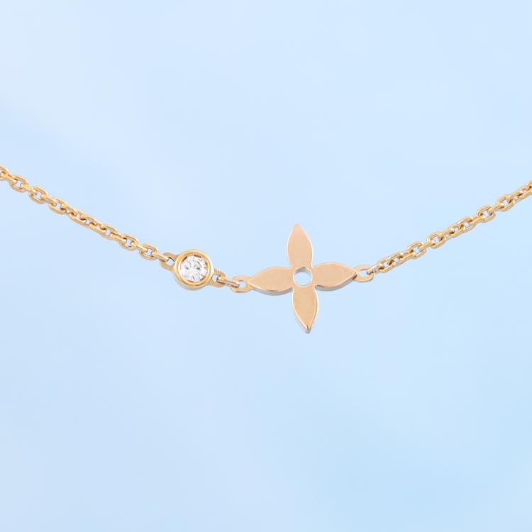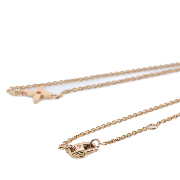 Louis Vuitton Idylle Blossom pendant with a round Natural Diamond of 0.04ct. 18ct rose gold with attached Louis Vuitton chain. Adjustable max length: 40cm. Weight: 3.8g. With Louis Vuitton pouch. (Pre-owned)