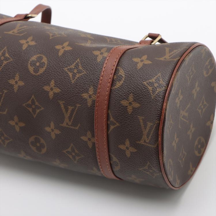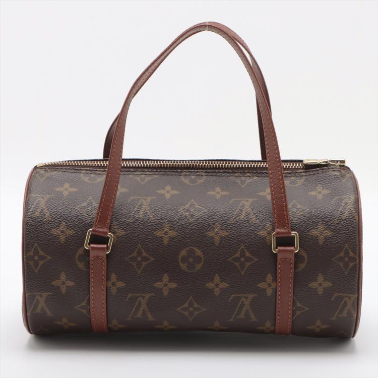 Louis Vuitton Papillon 26 in Monogram coated canvas. Featuring gold-toned hardware, and brown leather trim and flat handles. The zipper on top opens to a brown taiga canvas lining interior. Approximate dimensions: 26cm(L) x 13.5cm(H) x 13.5cm(D), handle drop 12cm. With Entrupy Certificate of Authenticity. (Pre-owned)