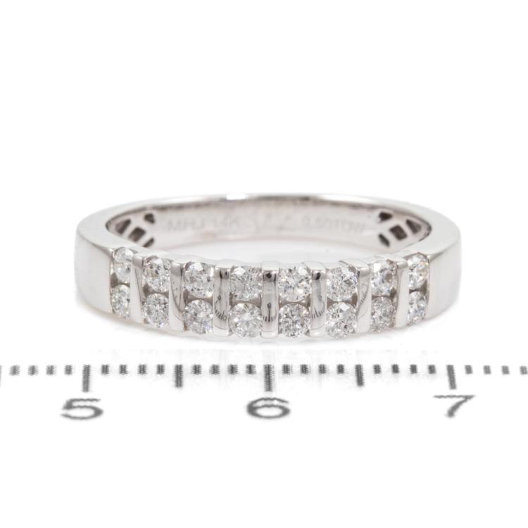 Michael Hill Diamond ring with round Natural Diamonds totalling approximately 0.50ct (Estimated grading H SI). 14ct white gold. Ring size: Q. Band width: 3.6mm - 2.8mm. Weight: 3.7g. (Pre-owned)