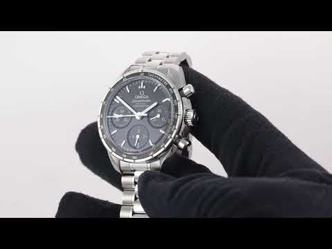 Omega Speedmaster Co-Axial stainless steel automatic mens watch. Black chronograph dial, date, case diameter: 38mm, wrist size: 20cm, Swiss made. Ref# 324.30.38.50.01.001. With Omega stainless steel bracelet and clasp. With Certificate of Authenticity, Undated Omega International Warranty Card, Omega Pictograms card and Omega box. 3 month FSA warranty. (Pre-owned)