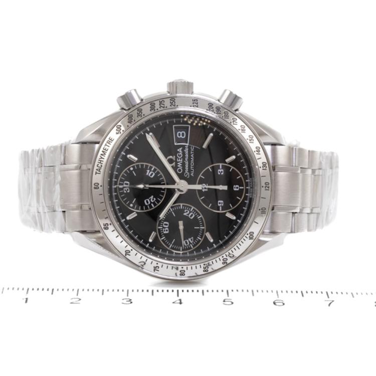 Omega Speedmaster stainless steel automatic mens watch. Black chronograph dial, date, case diameter: 39mm, wrist size: 19cm, Swiss made. Ref# 3513.50. With Omega stainless steel bracelet and clasp. With Certificate of Authenticity, Undated Omega International Warranty Card and Omega Pictograms Card. 3 month FSA warranty (Pre-owned)